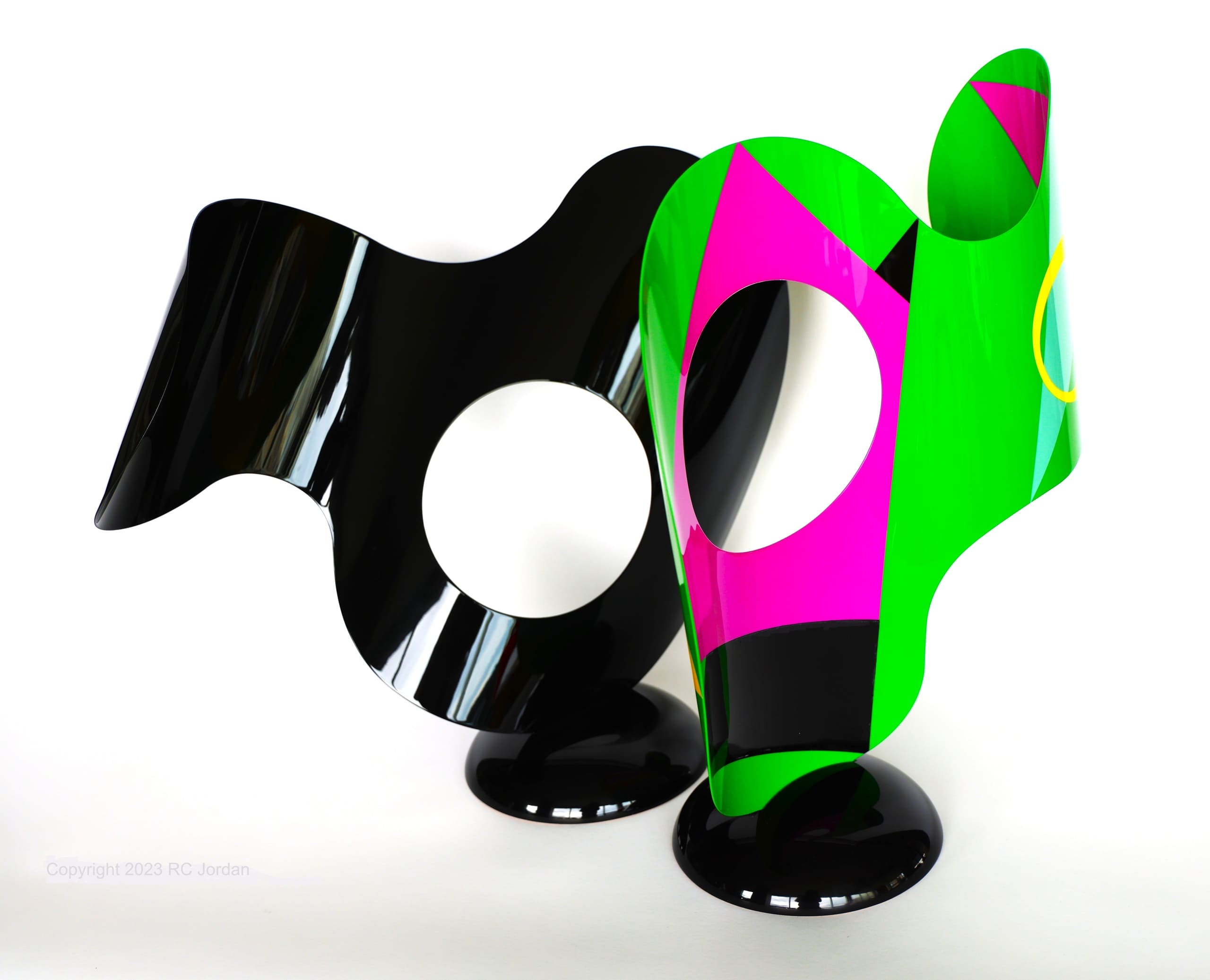 Sculptures: Stainless steel, urethane-acrylic (automotive ) paint,